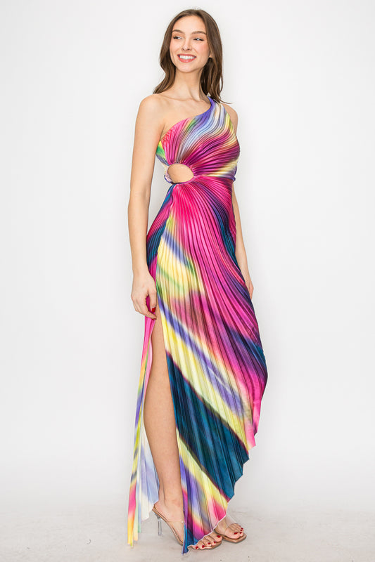Carlee Ombre Printed One-Shoulder Pleated Dress