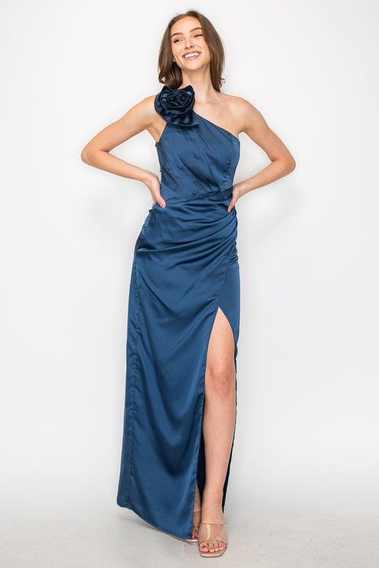 Amelia Satin Gown with Floral Detail