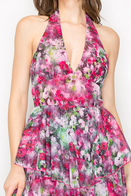 Chloe Floral Halter Tiered Midi DressVendor:Minuet ApparelRegular price $95.00 USDRegular priceUnit price / per-