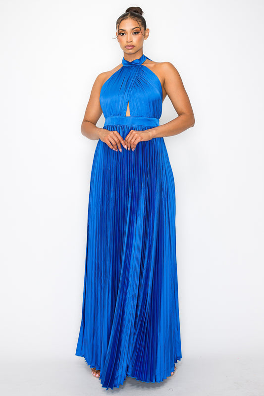 Eva Halter Neck Pleated Gown